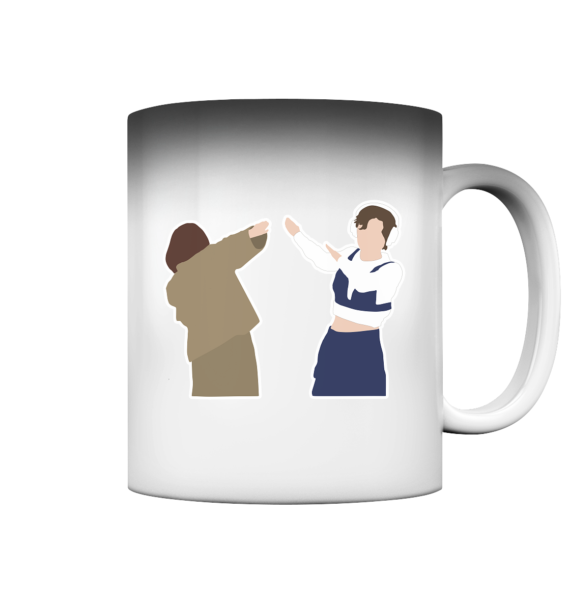 • Beim Eingießen eines heißen Getränks verfärbt sich die Tasse weiß und das aufgedruckte Motiv wird sichtbar.