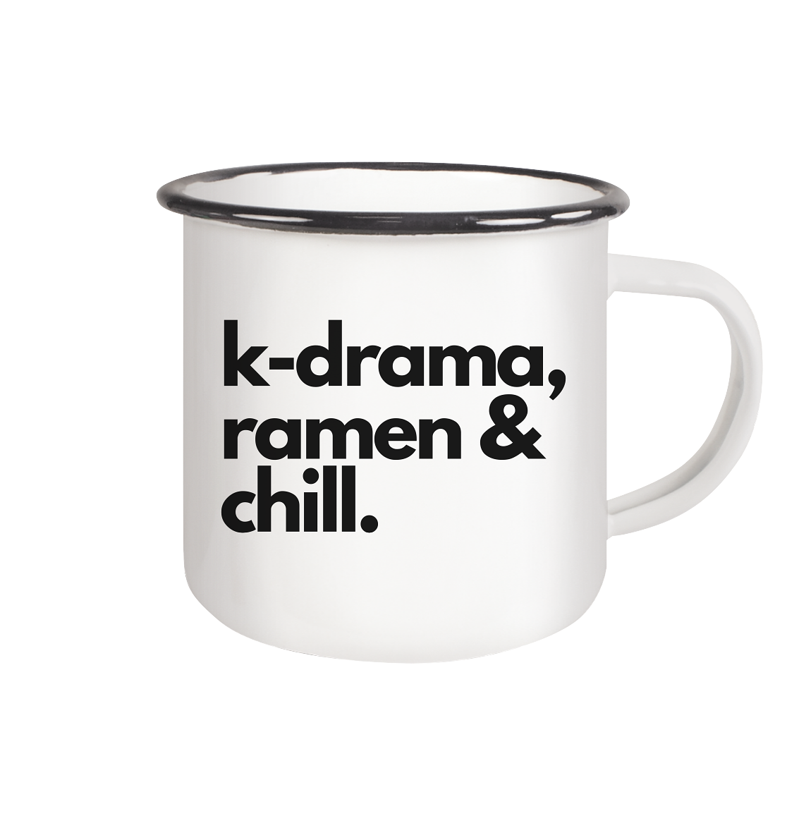 K-Drama, Ramen & Chill - Emaille Tasse (Black)